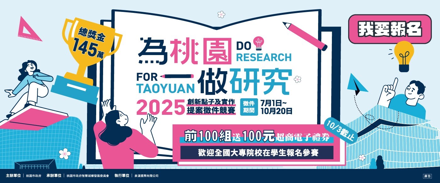 一、 依據「為桃園做研究」桃園市政府大專校院學生創新點子及研究實作獎勵計畫、本府114年(下同)7月23日桃智創字第1140005872號函續辦。